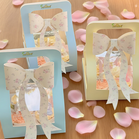 กล่องเค้กอบผ้าซาตินและโลหะสำหรับเป็นของขวัญวันเกิดบรรจุภัณฑ์แฟชั่นพร้อมริบบิ้นตกแต่งตามสั่ง