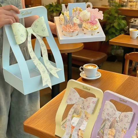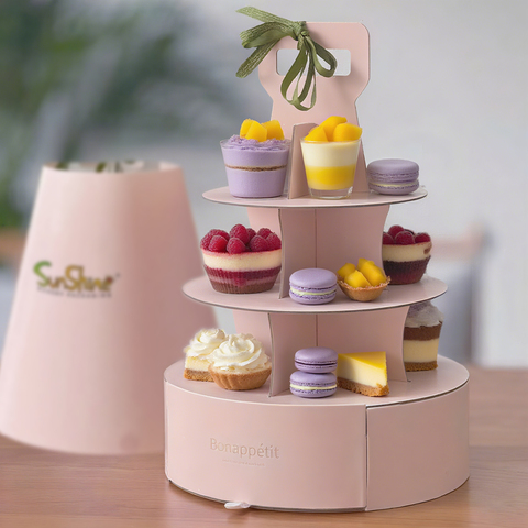 กล่องกระดาษแข็งสำหรับใส่เค้กขนมหวานกล่องเค้กขนาดเล็กสีชมพูพิมพ์โลโก้ได้ตามต้องการ